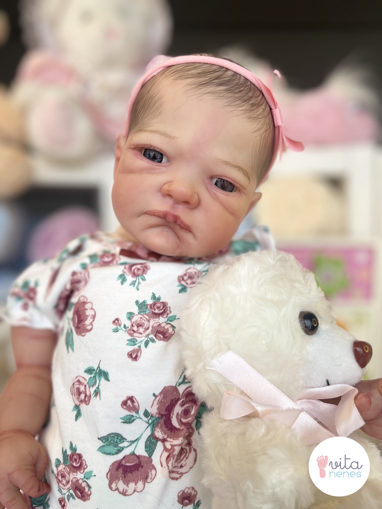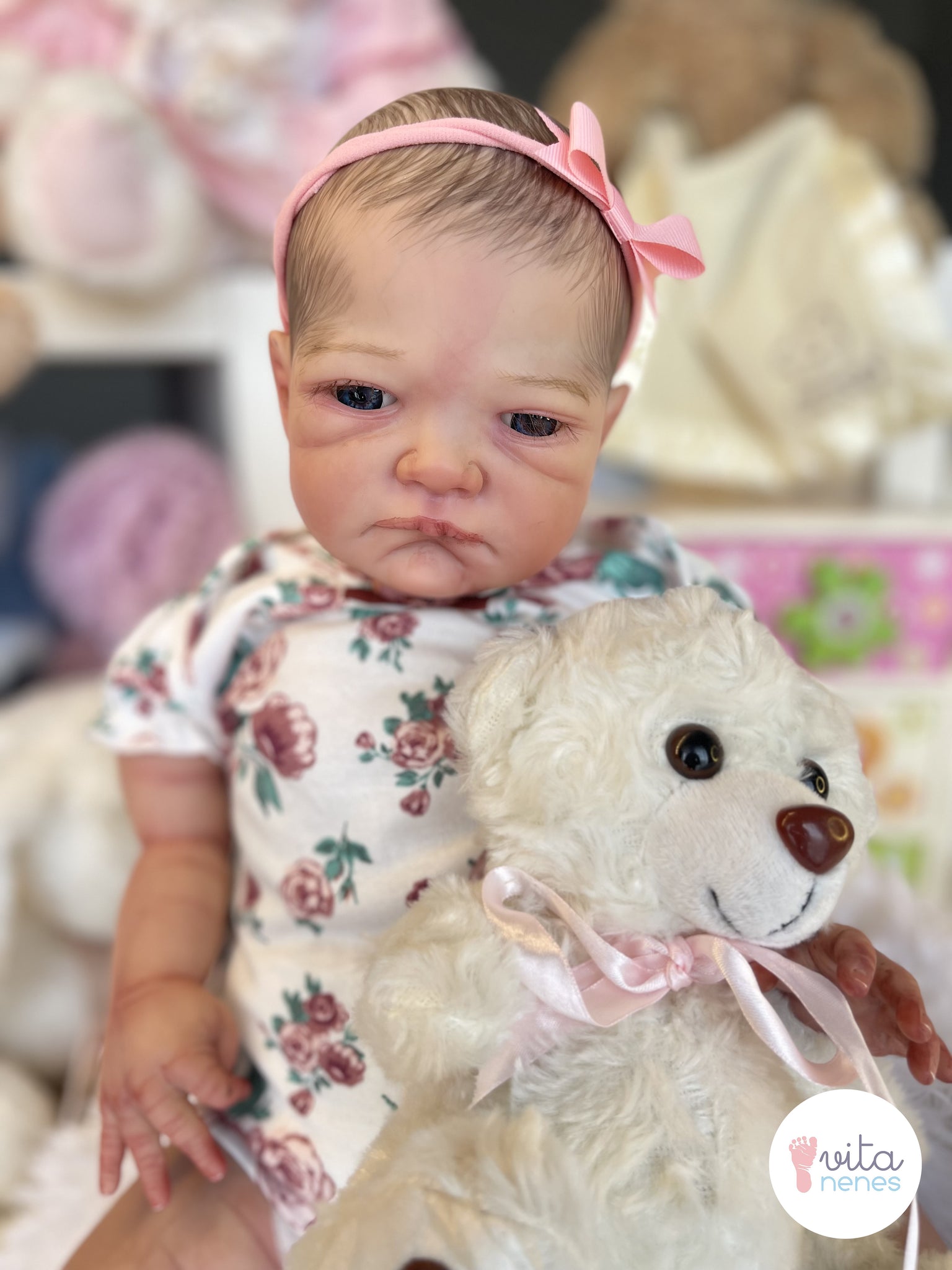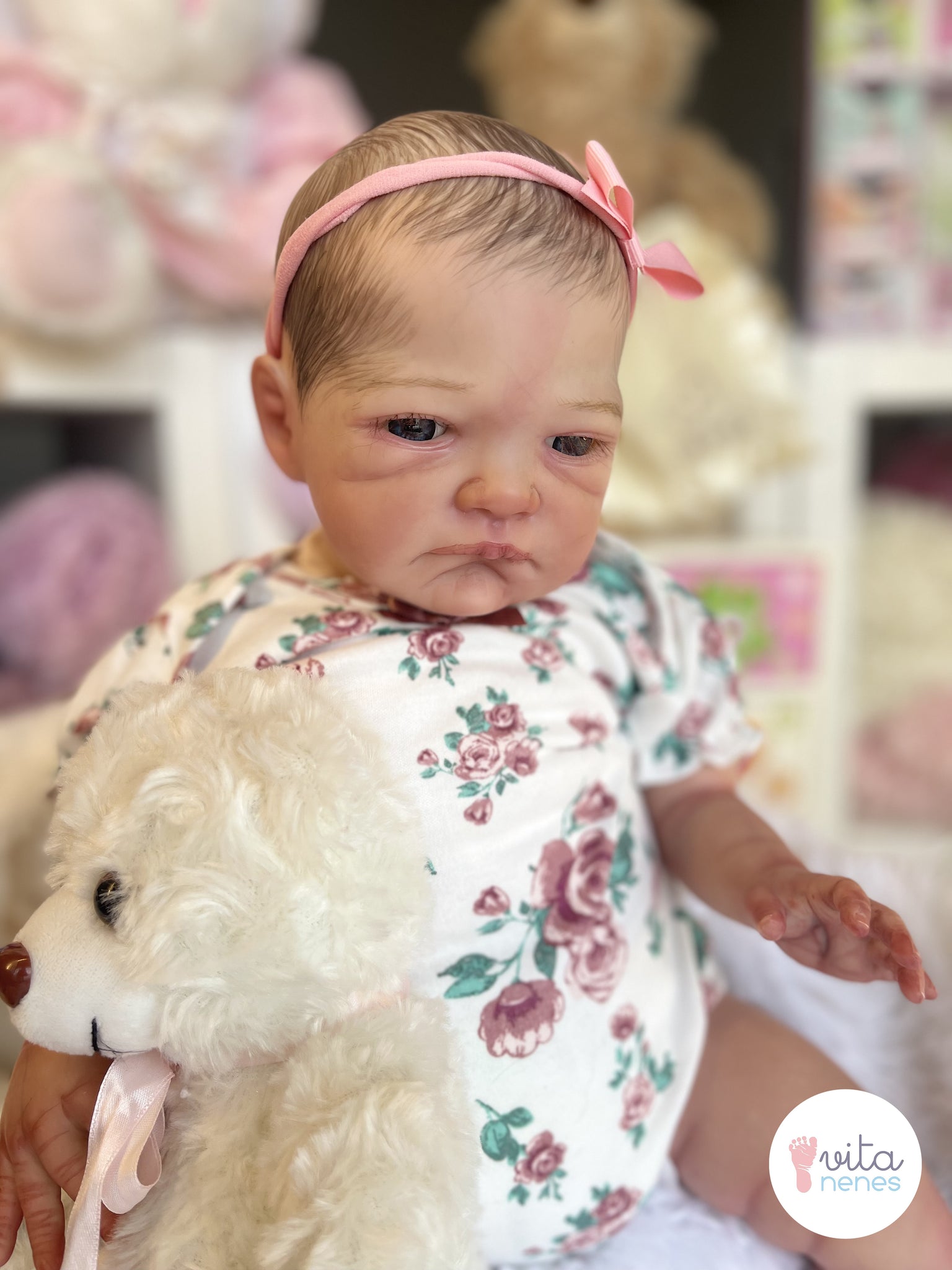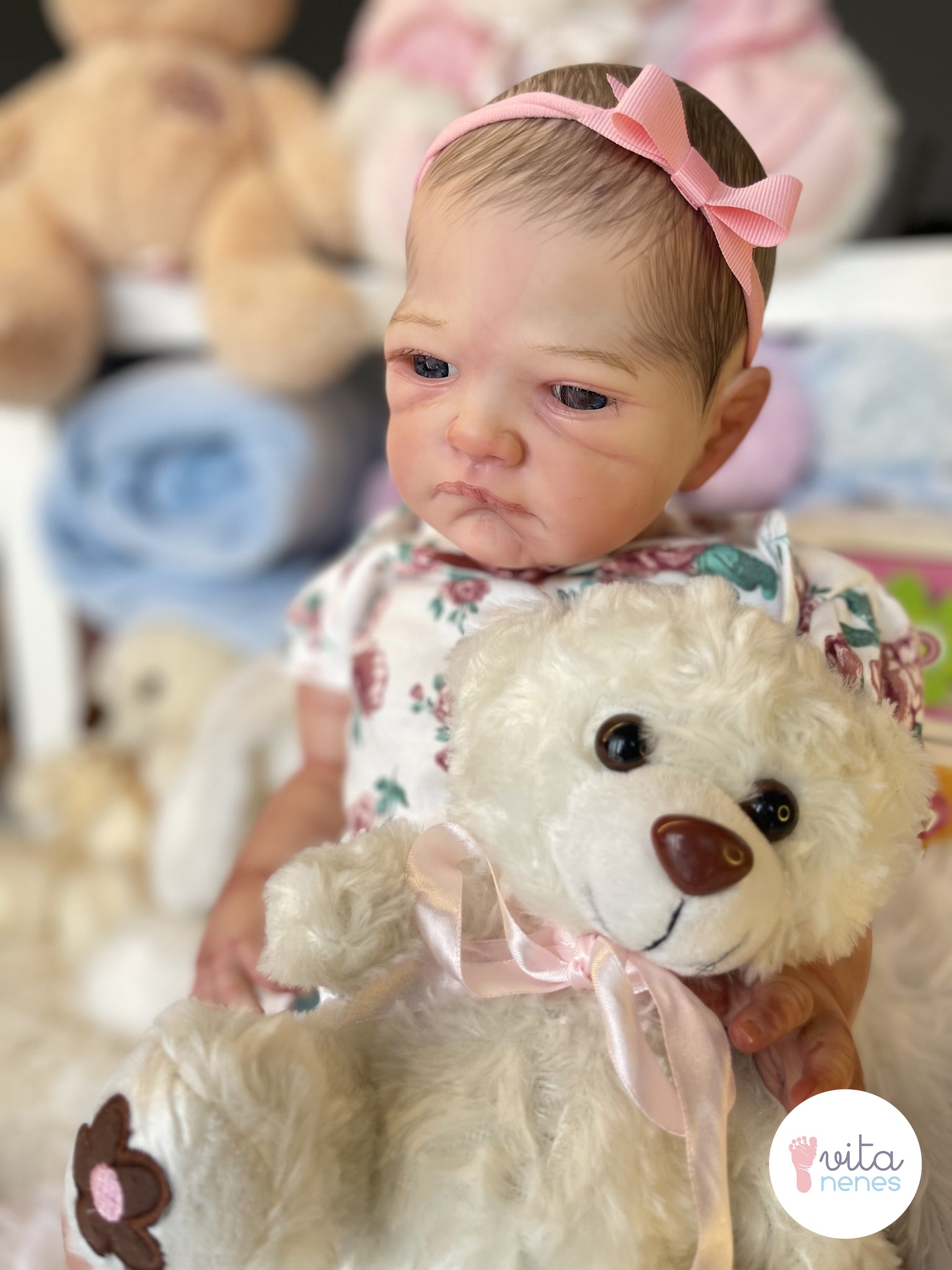 Kit reborn importado original, elaboración artesanal, discos de movimientos en brazos y piernas, relleno con microesfera de vidrio, pellet y relleno sintético, detallado con diferentes tipos de capas de pintura translucida horneable; enfatizando detalles como pliegues, uñas, cejas, labios, venas, ojos dientes, cabello y manchas propias de los bebes recién nacidos para lograr una textura en la piel lo mas parecido a lo real.