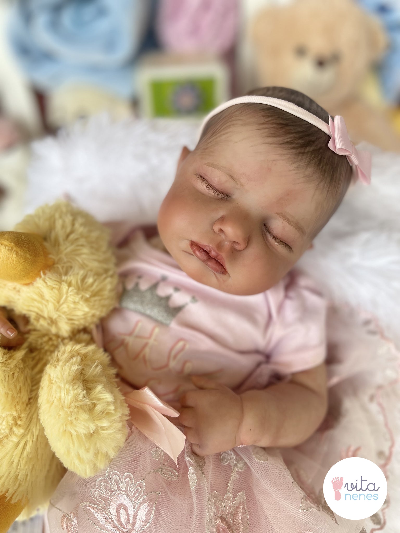 Kit reborn importado original, elaboración artesanal, discos de movimientos en brazos y piernas, relleno con microesfera de vidrio, pellet y relleno sintético, detallado con diferentes tipos de capas de pintura translucida horneable; enfatizando detalles como pliegues, uñas, cejas, labios, venas, ojos dientes, cabello y manchas propias de los bebes recién nacidos para lograr una textura en la piel lo mas parecido a lo real.