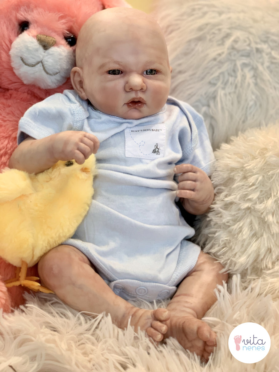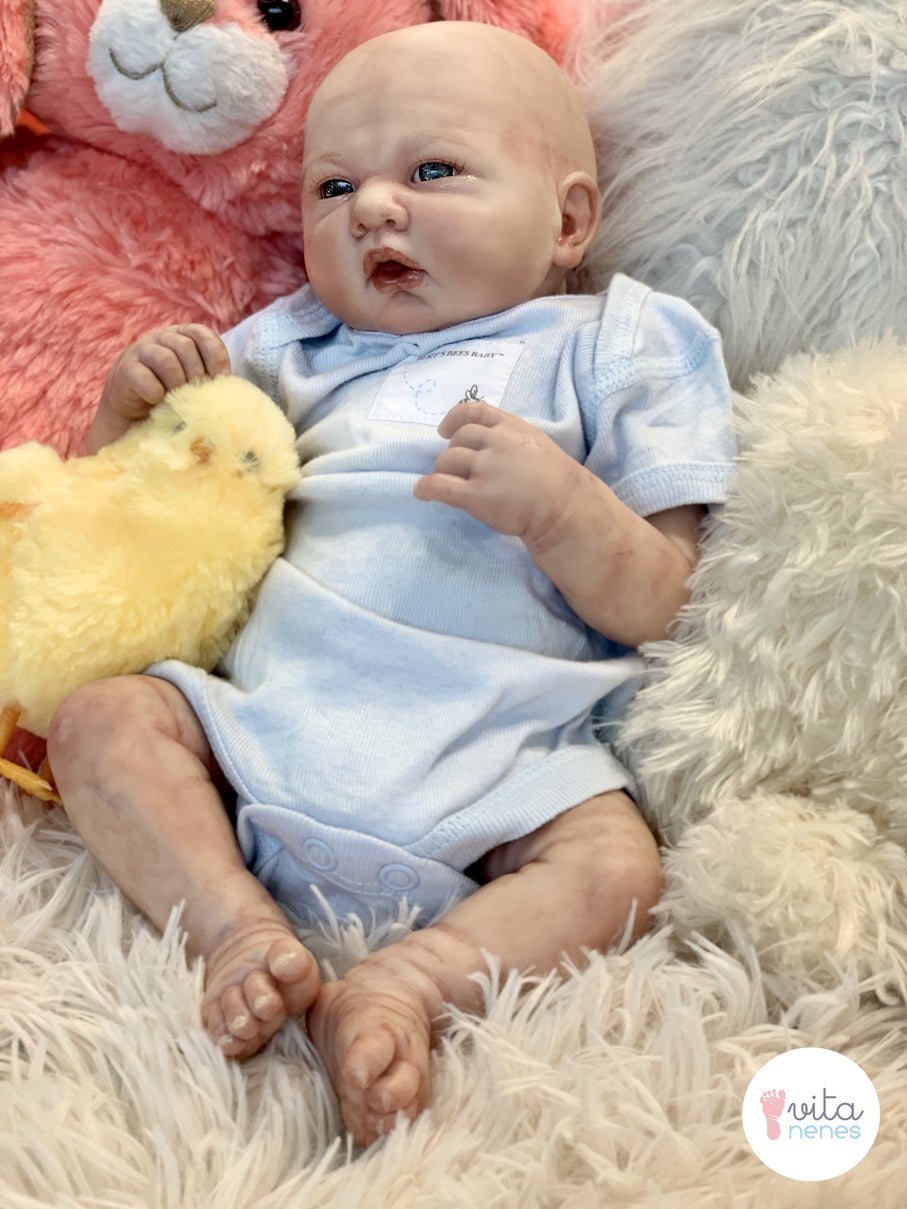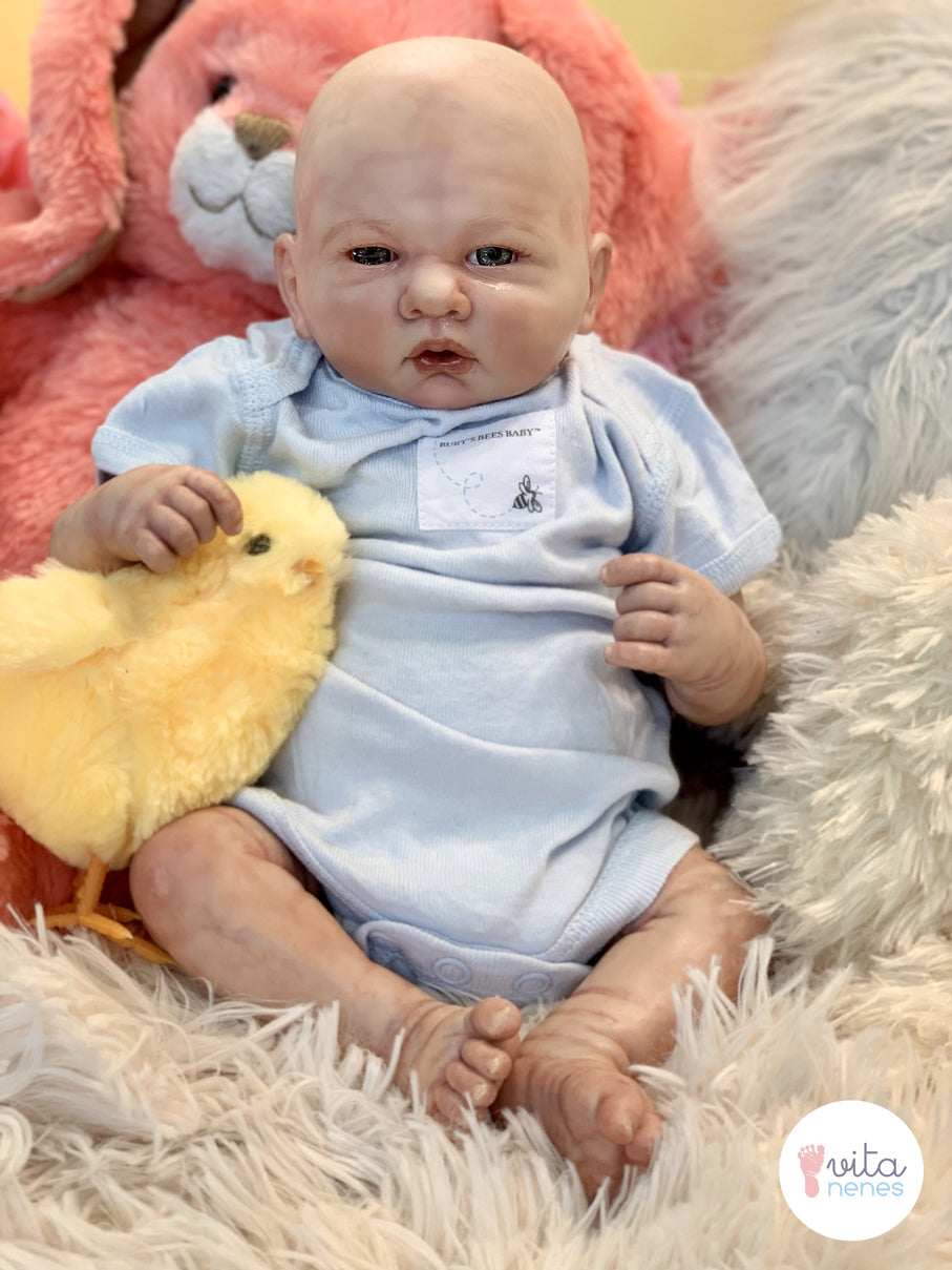 Kit reborn importado original, elaboración artesanal, discos de movimientos en brazos y piernas, relleno con microesfera de vidrio, pellet y relleno sintético, detallado.con diferentes tipos de capas de pintura translucida horneable; enfatizando detalles como pliegues, uñas, cejas, labios, venas, ojos dientes, cabello y manchas propias de los bebes recién nacidos para lograr una textura en la piel lo mas parecido a lo real.