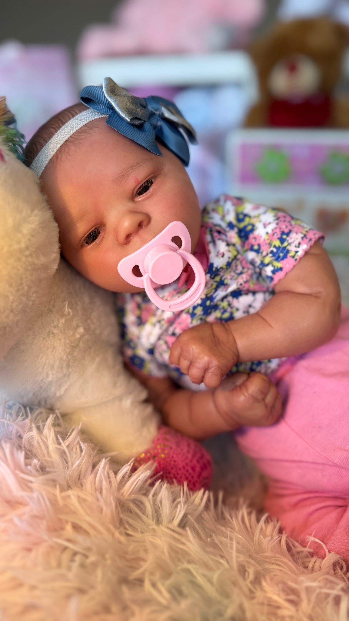 Kit reborn importado original, elaboración artesanal, discos de movimientos en brazos y piernas, relleno con microesfera de vidrio, pellet y relleno sintético, detallado con diferentes tipos de capas de pintura translucida horneable; enfatizando detalles como pliegues, uñas, cejas, labios, venas, ojos dientes, cabello y manchas propias de los bebes recién nacidos para lograr una textura en la piel lo mas parecido a lo real.