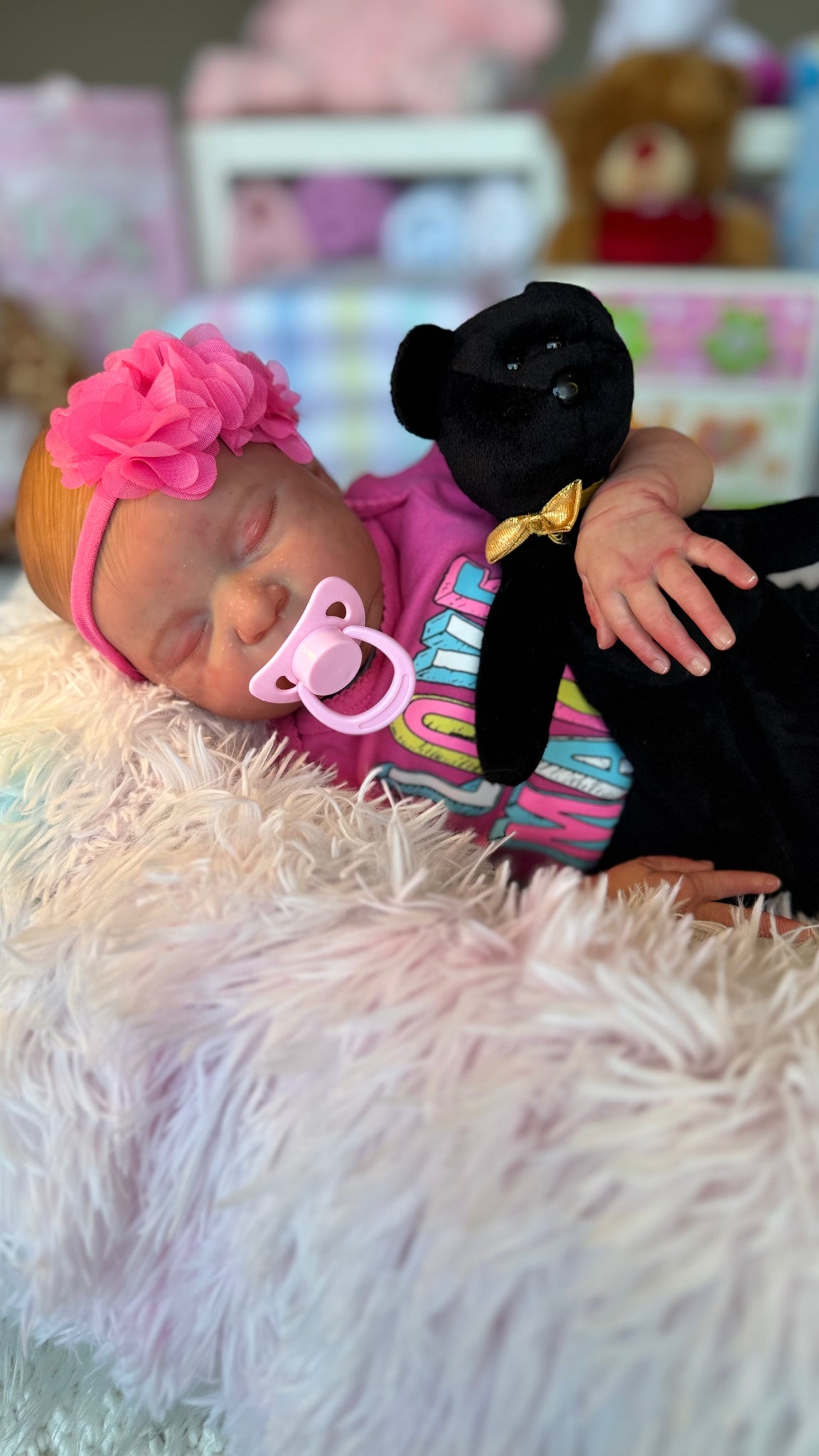 Kit reborn importado original, elaboración artesanal, discos de movimientos en brazos y piernas, relleno con microesfera de vidrio, pellet y relleno sintético, detallado con diferentes tipos de capas de pintura translucida horneable; enfatizando detalles como pliegues, uñas, cejas, labios, venas, ojos dientes, cabello y manchas propias de los bebes recién nacidos para lograr una textura en la piel lo mas parecido a lo real.