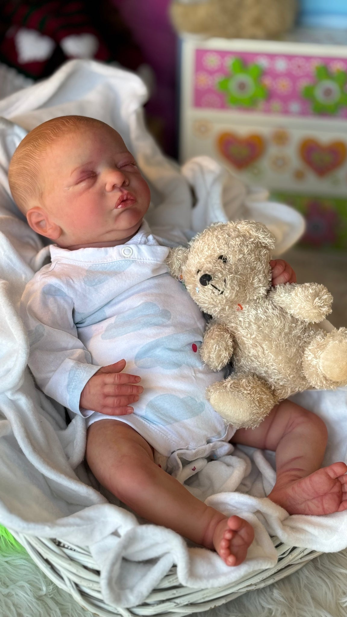 Kit reborn importado original, elaboración artesanal, discos de movimientos en brazos y piernas, relleno con microesfera de vidrio, pellet y relleno sintético, detallado.con diferentes tipos de capas de pintura translucida horneable; enfatizando detalles como pliegues, uñas, cejas, labios, venas, ojos dientes, cabello y manchas propias de los bebes recién nacidos para lograr una textura en la piel lo mas parecido a lo real.